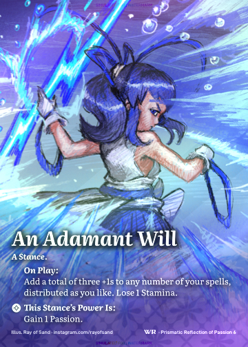 Add a total of three +1s to any number of your spells, distributed as you like. Lose 1 Stamina (if you have any).